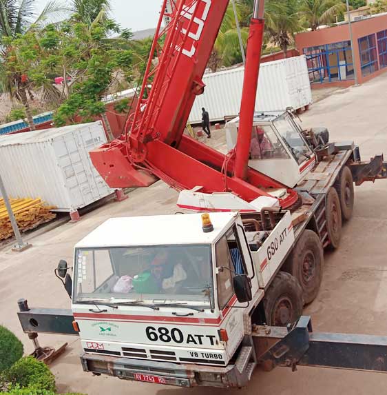 1 camion-grue nous assurant une autonomie pour le transport et la manutention de nos matériels de chantier.